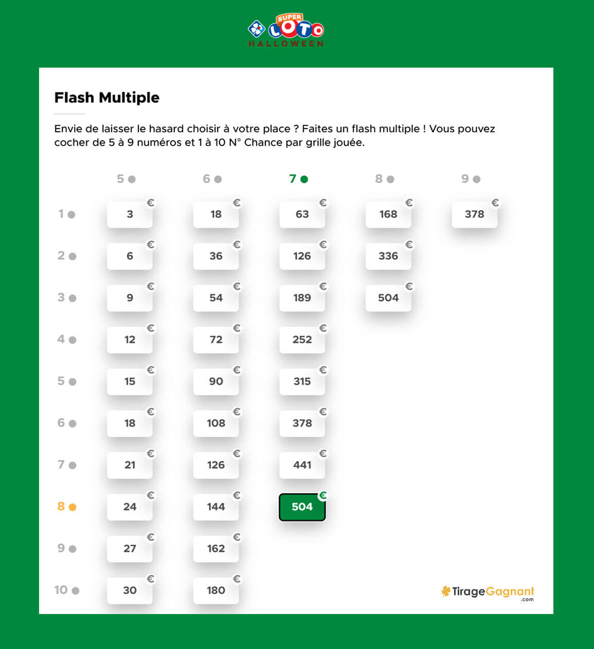 Si vous souhaitez allouer les chances maximales avec une participation au Super Loto d’Halloween via 10 grilles multiples sans pour autant exploser votre budget, alors le pack Multichances de la FDJ est une solution faites pour vous.